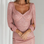 Den pailletbesatte minikjole er et smukt valg til elegante lejligheder. Åbne ærmer gør den endnu mere sofistikeret.