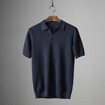 Kortærmet herretrøje med krave og struktureret strik