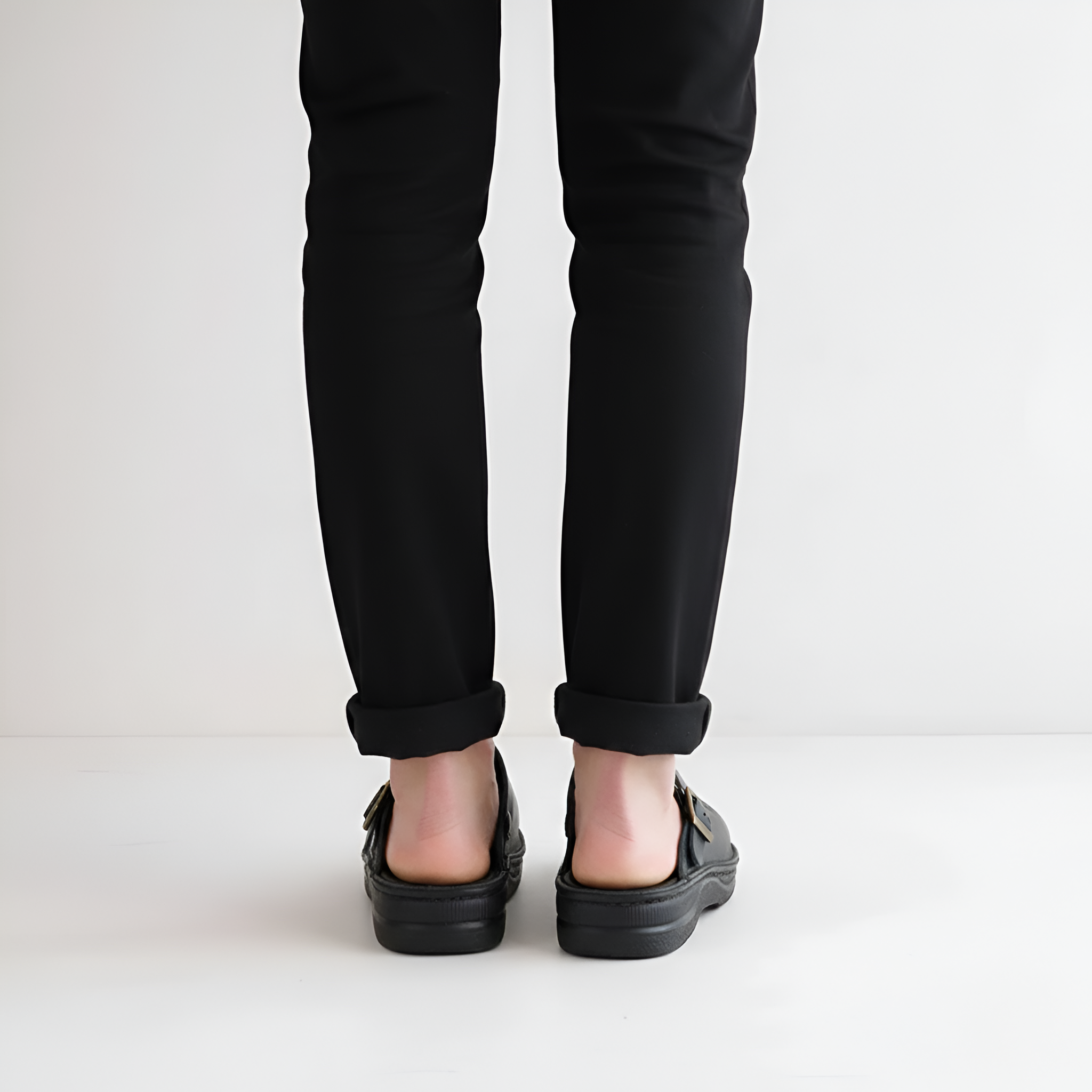 Komfortable træsko til herre med lukket front og skridsikker sål