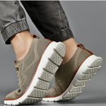 De strikkede walking-sneakers med letvægtskonstruktion og arbejdsklar stil er designet til mænd, der vil have komfort og klasse i ét. Den åndbare, strikkede overdel sikrer god luftcirkulation og holder dine fødder kølige, mens den polstrede sål sikrer lange dage på fødderne. De kombinerer træningsskoens fleksibilitet med kontorskoens smarte look og er ideelle til pendling, gåture eller afslappede forretningssituationer.