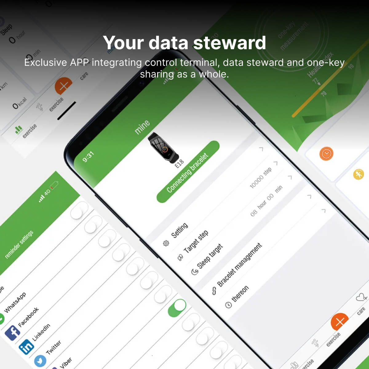 - Overvågning af blodtryk : Giver nøjagtige blodtryksmålinger takket være avanceret intelligent teknologi.