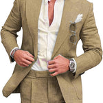 Den Declan hørjakkesættet til mænd kombinerer elegance og komfort, hvilket gør det perfekt til de varmere årstider. Det er fremstillet af en åndbar hørblanding og har en afslappet pasform og et sofistikeret look til enhver lejlighed.