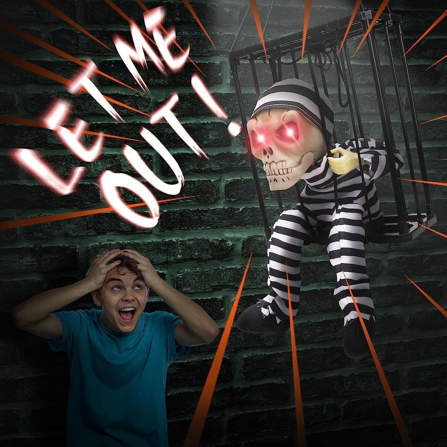 Křičící kostra TerrorBone je víc než jen dekorace - je to strašidelný středobod, který promění každou místnost ve strašidelnou kulisu. Její křik aktivovaný pohybem udrží hosty v napětí, zatímco její lehká, ale odolná konstrukce umožňuje opakované použití po mnoho let.