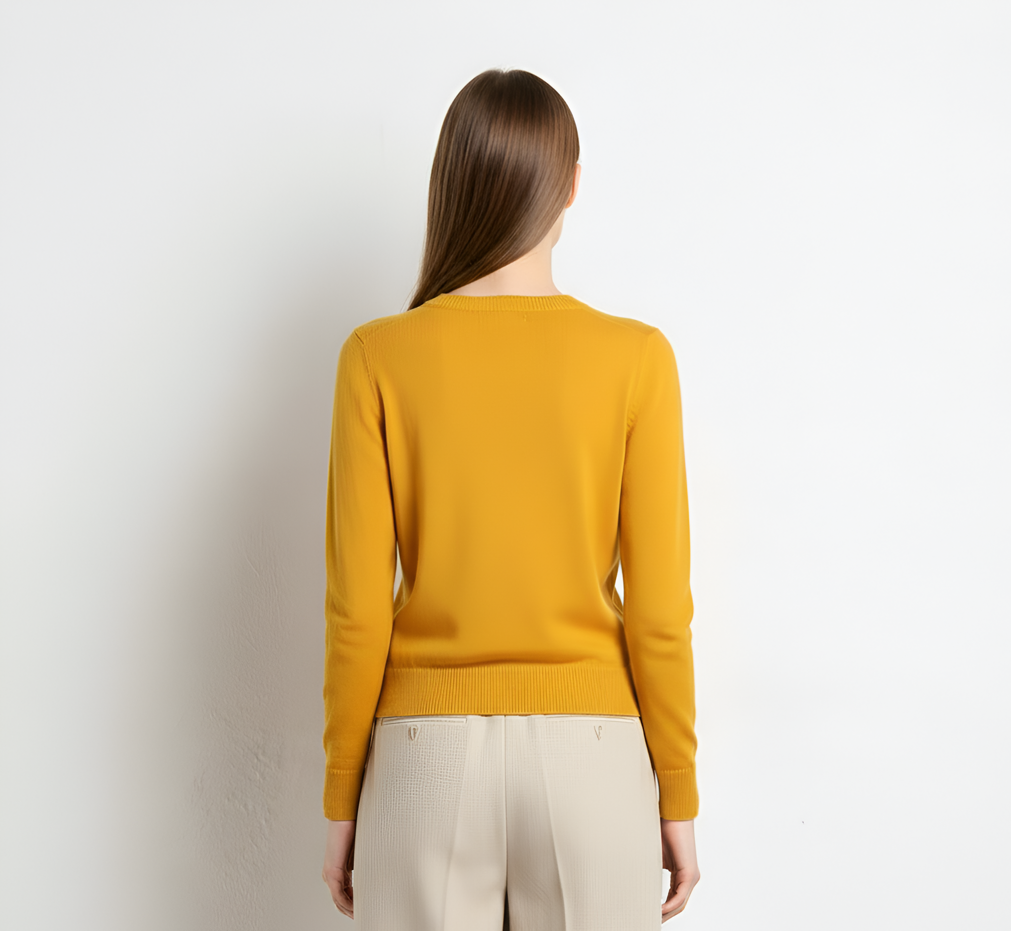 Αυτή η γυναικεία πλεκτή μπλούζα είναι κατασκευασμένη από ένα μαλακό μείγμα μαλλιού, που προσφέρει ευχάριστη ζεστασιά και καλή άνεση στην καθημερινότητα. Ο απλός σχεδιασμός με στρογγυλή λαιμόκοψη και μακριά μανίκια δημιουργεί μια διαχρονική εμφάνιση, που είναι εύκολο να συνδυαστεί τόσο με παντελόνια όσο και με φούστες. Η εφαρμογή είναι ελαφρώς εφαρμοστή και προσφέρει ωραία πτώση χωρίς να νιώθετε σφιχτή. Μια πολυχρηστική πλεκτή μπλούζα, κατάλληλη για εργασία, ελεύθερο χρόνο και στρώσεις σε μεταβατικές εποχές.