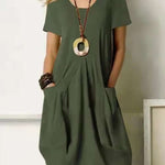 Introducing our women's casual dress, a versatile piece of clothing that effortlessly combines comfort and style. With a relaxed fit and flattering silhouette, the dress is made from a soft, breathable fabric that keeps you comfortable all day long. Ideal for errands, casual outings and weekends, this dress is a promise of easy everyday elegance.