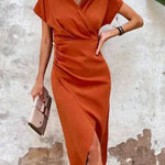 Chic V-neck midi dress: bright orange for summer