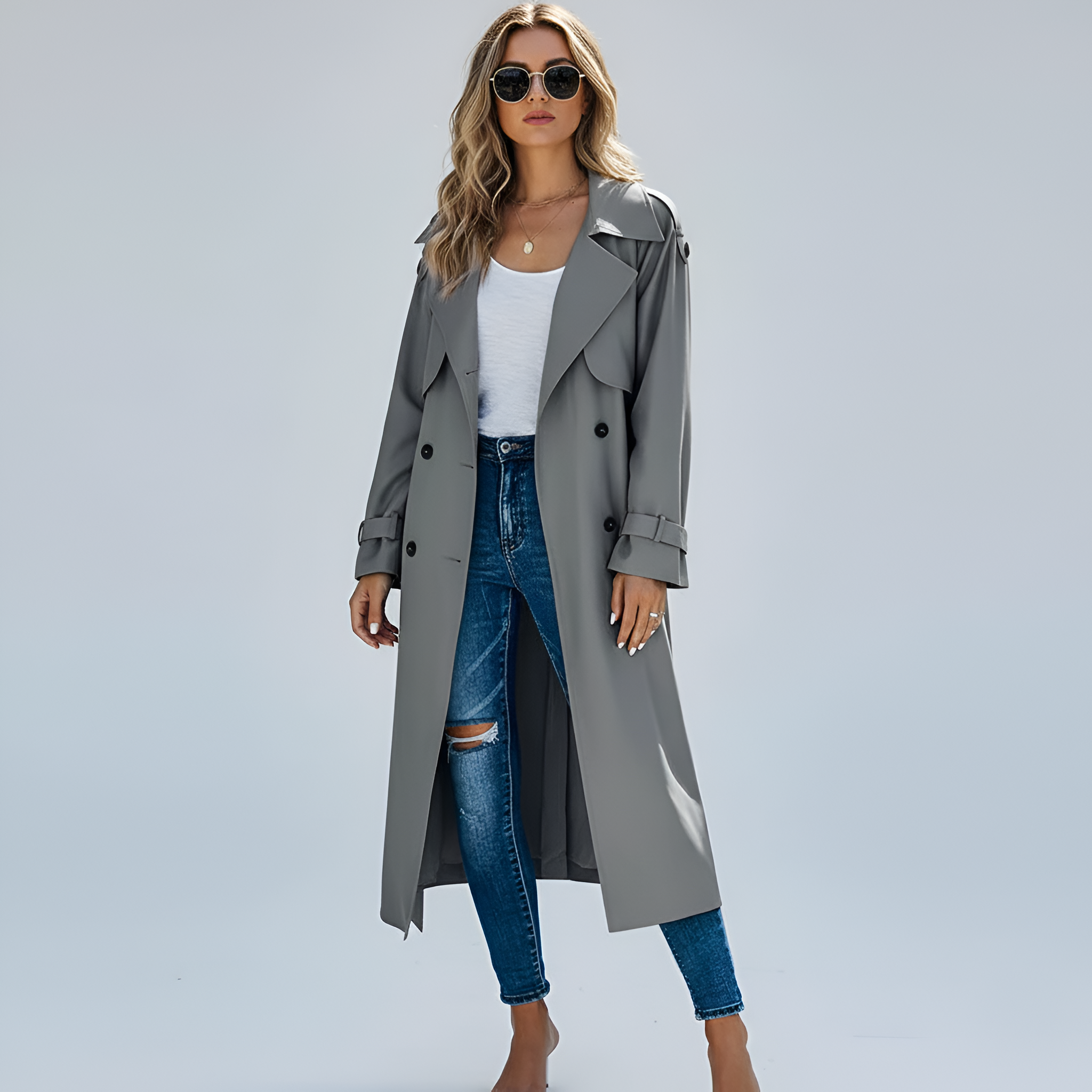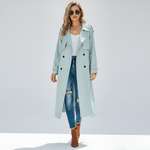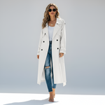 Ionely trenchcoat largo para mujer con cinturón y cuello con solapa