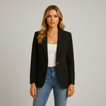 Ce blazer pour femme est fabriqué dans un mélange de polyester lisse, qui offre un aspect structuré et une bonne tenue au quotidien. Le design présente un revers classique, une fermeture simple par bouton et des lignes épurées, qui conviennent naturellement aussi bien pour le bureau que pour des tenues plus décontractées. La coupe cintrée offre un look équilibré sans être serré, tandis que le matériau assure un confort tout au long de la journée. Le blazer peut être porté sur des tops, chemises ou pulls et convient aussi bien au travail, aux réunions qu'aux looks élégants du quotidien.