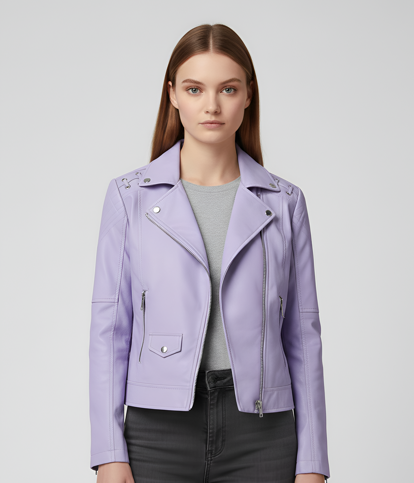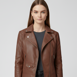 Cette veste courte en cuir pour femme est confectionnée en cuir, offrant une surface lisse et une coupe agréable et structurée. Conçue avec une fermeture éclair et des détails classiques, elle crée un style épuré, facile à assortir avec des jeans ou des robes. La coupe ajustée épouse le corps sans restreindre les mouvements et assure un confort au quotidien. La veste convient pour un usage quotidien, le travail et les occasions décontractées où un vêtement simple et fonctionnel est souhaité.