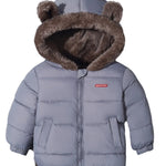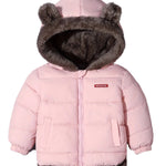 Denne vinterfrakke er designet til at holde dit barn godt tilpas på de koldeste dage. Den har et blødt for, der varmer, og et sødt design med bjørneører, som gør den til en sjov tilføjelse til garderoben. Den lette konstruktion gør den nem at bevæge sig rundt i, så den er velegnet til hverdagsbrug og udendørs aktiviteter.