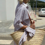 Experimentați combinația perfectă de eleganță și confort cu rochia cămașă cu dungi LOTTE. Cu croiala sa relaxată și designul ușor, respirabil, este ideală pentru orice ocazie. Purtați-o lejer pentru un look casual sau adăugați o curea în talie pentru un stil mai sofisticat. Un esențial versatil pentru garderobă!