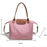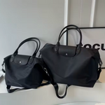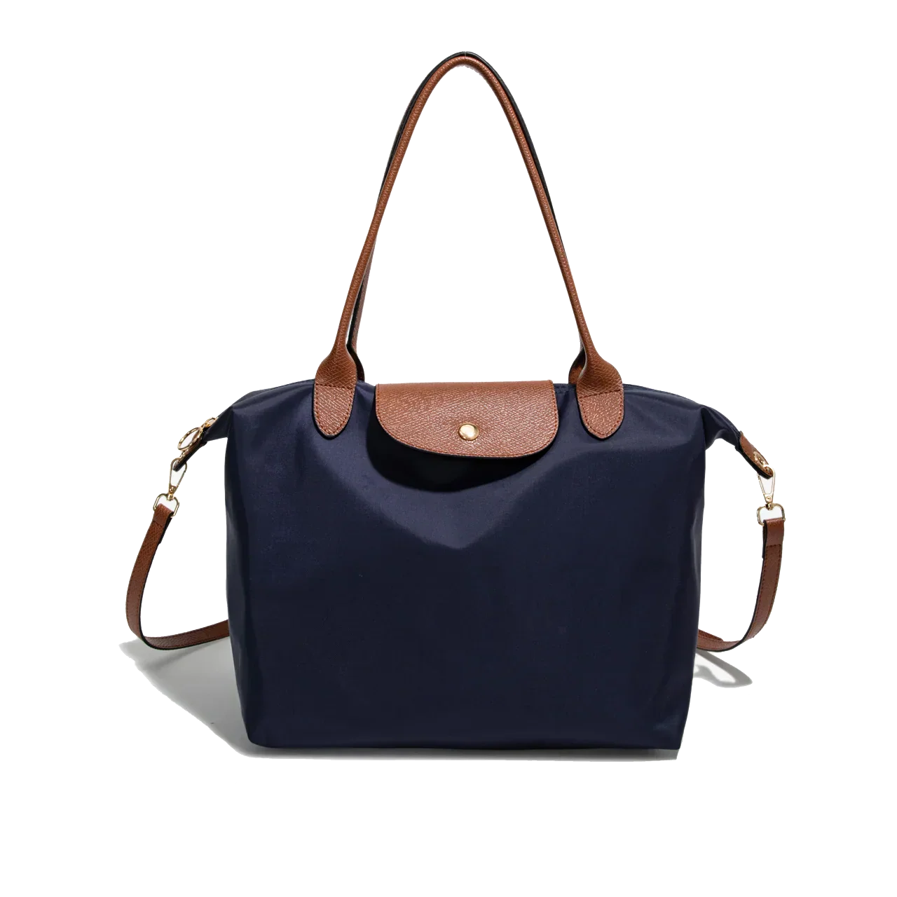 Fabricată din pânză ușoară de nailon, cu mânere elegante cu aspect de piele, geanta are un compartiment principal cu fermoar, închidere instantanee și un buzunar interior plat practic. Datorită designului său pliabil, aceasta poate fi depozitată compact atunci când nu este utilizată - ideală pentru excursii spontane sau călătorii.